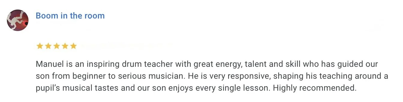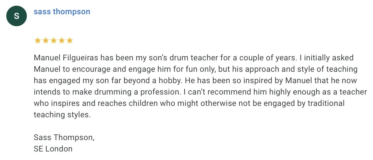 I currently have a few after-school lesson slots available for beginner students in SE London so you or your child can try the drums and feel comfortable before committing.